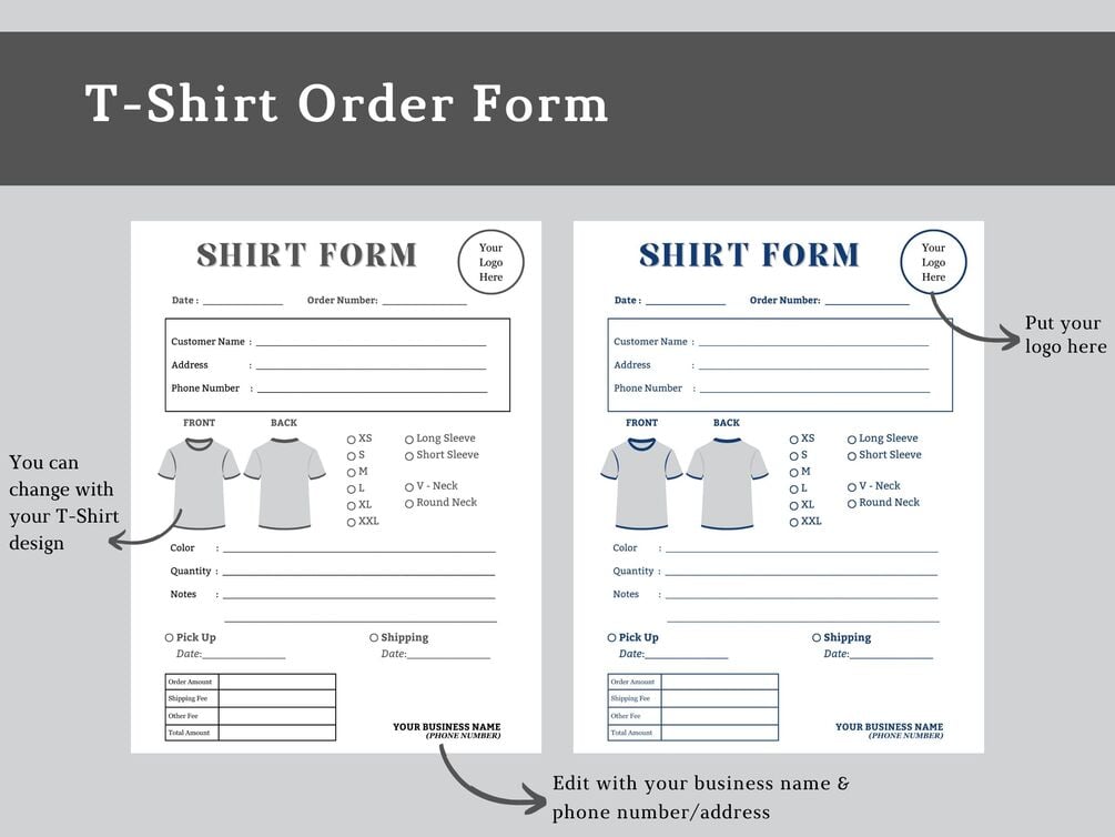 Order Form and T-Shirt Form Template | Order Form Editable for Small Business | Custom Order Form
